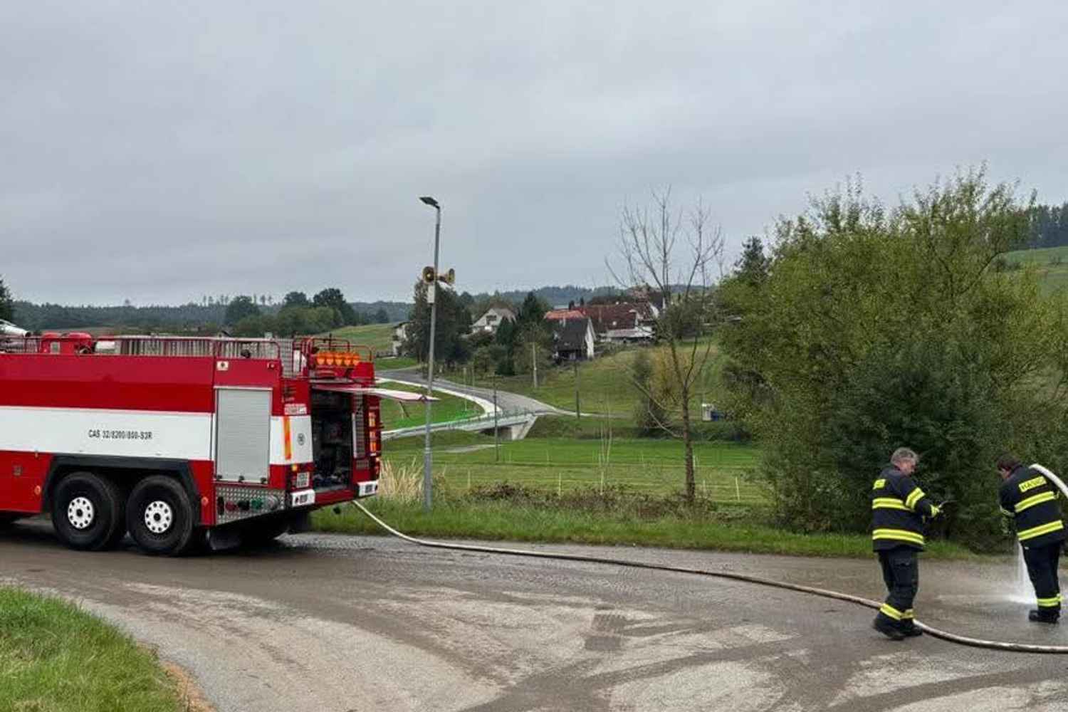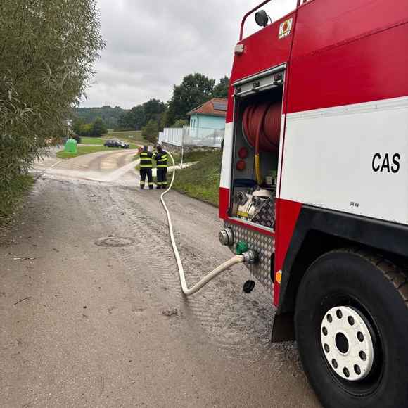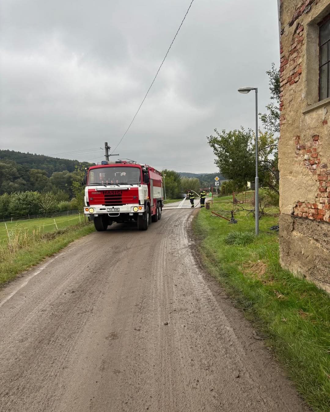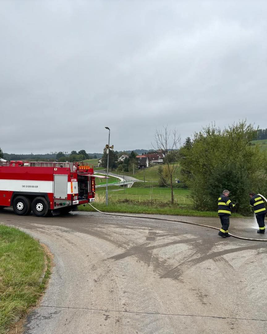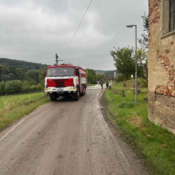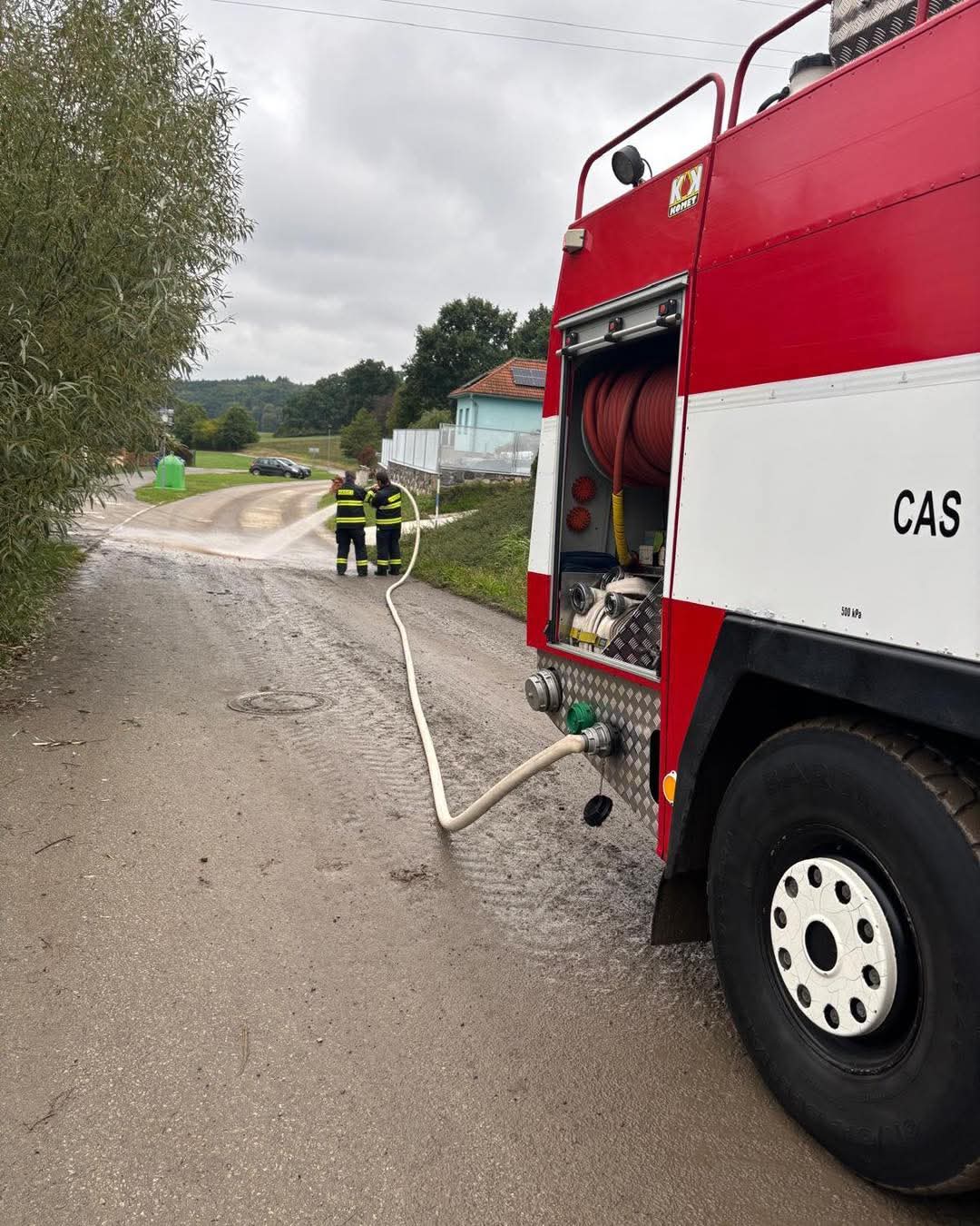 V pátek 26. září byla naše jednotka vedením obce Hrdějovice požádána, aby odstranila v odpoledních hodinách nános bahna na silnici v sousedních Dobřejovicích. Čištění jsme provedli jedním proudem C z Tatry 815 (v počtu 1+2).